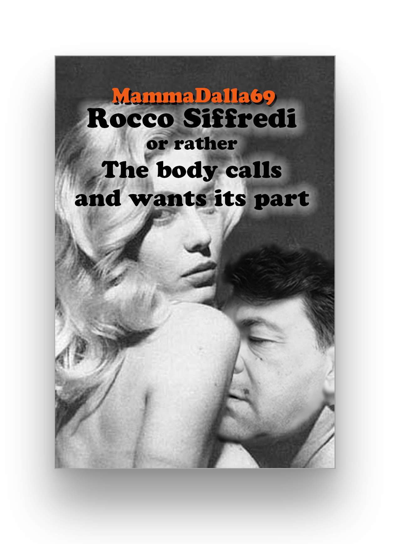 Already by the cover, where MammaDalla69 replaces Rocco Siffredi together with the porn star Moana Pozzi in the poster of the film Moana e… le altre regine by Lawrence Webber (1987), it is understood that the book will not be purely focused on the public and private life of the porn actor, currently still in activity. It will certainly concern what were his beginnings resulting from his biography Io, Rocco and Sex Lessons, added to a good cadence of female self-centeredness, currently very much in vogue, where the roles are reversed and it is not always the man who leads the game leaving the woman a purely marginal and submissive role, an essential rule of current pornography, but it gives the latter the relevant potential that only apparently seems to be secondary and surrounding, but which in reality lets her sensuality be to establish those unwritten rules, even when the man tries to regain command.